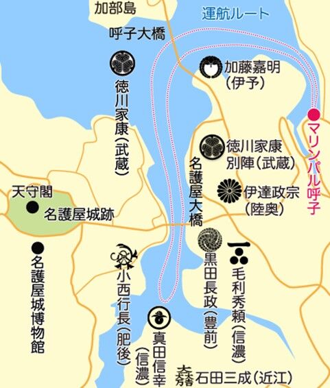 名古屋大橋の架かる名護屋浦は、秀吉が朝鮮征伐に出た浦で、この名護屋浦の周辺には10万人以上の兵士の陣地があったが、今はその陣地跡には跡形も残っていないところが多い。