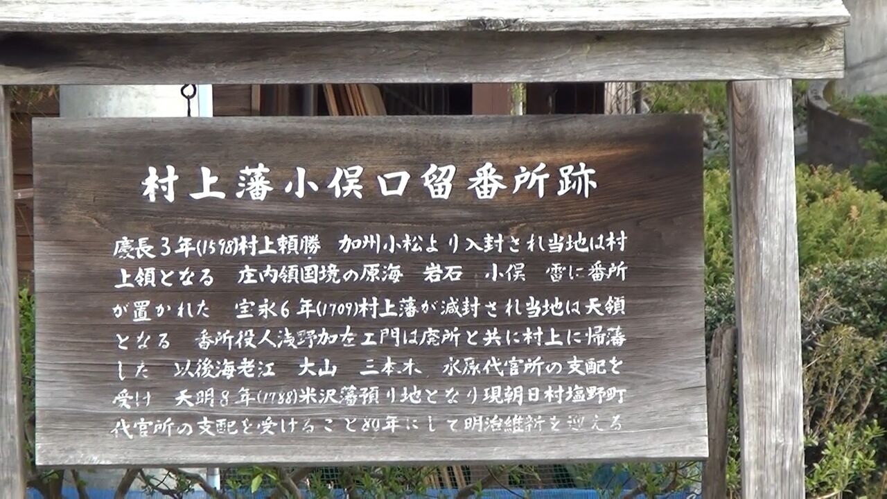 1598年に加州小松より村上勝頼が入封されて当地は村上領となり、荘内領国境の原海、岩石、小俣、雷に番所が置かれた。