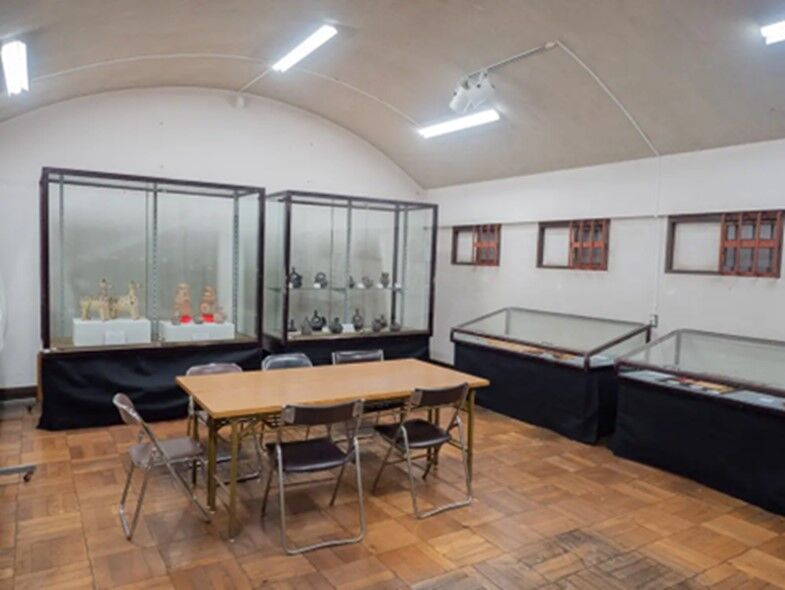 倉敷考古館はナマコ壁の倉敷らしい建物の中に、旧石器時代から古墳時代の吉備地方の遺跡を展示する考古博物館で、展示品は岡山県から広島県東部に広がっていた吉備地方とその周辺の遺跡の出土品が中心だが、他県やペルーといった地域の展示品もある。