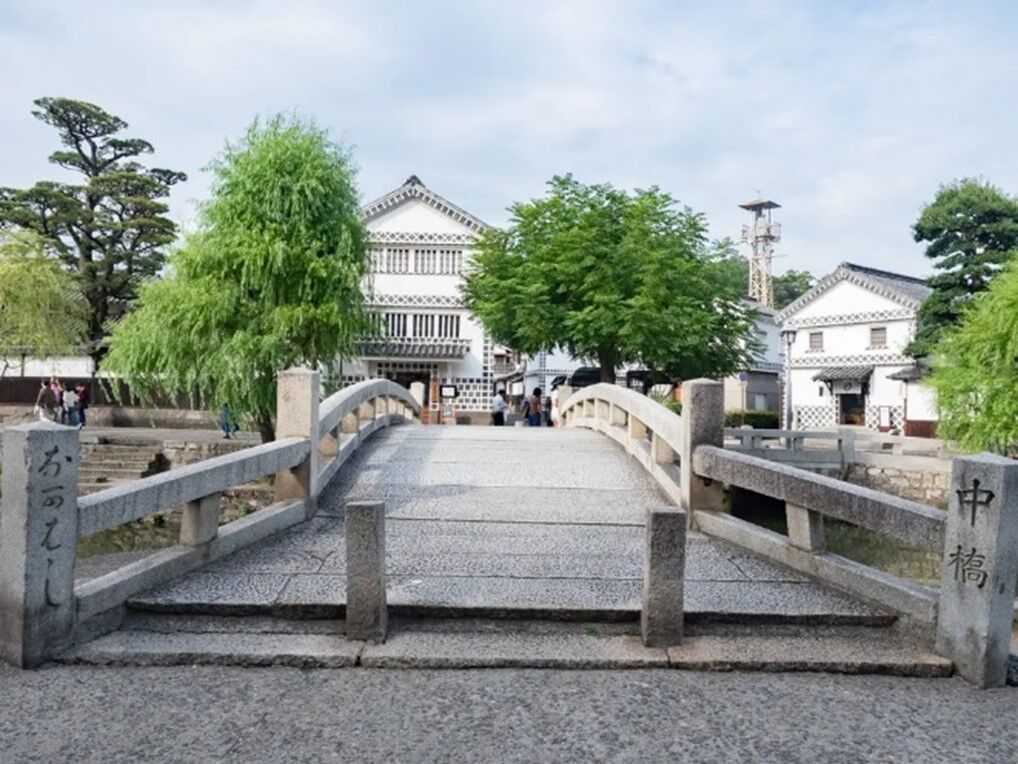 倉敷考古館は、美観地区の倉敷川畔エリアのほぼ中央に位置していて、目の前には中橋、橋を渡った反対側には「倉敷館 観光案内所」という立地である。